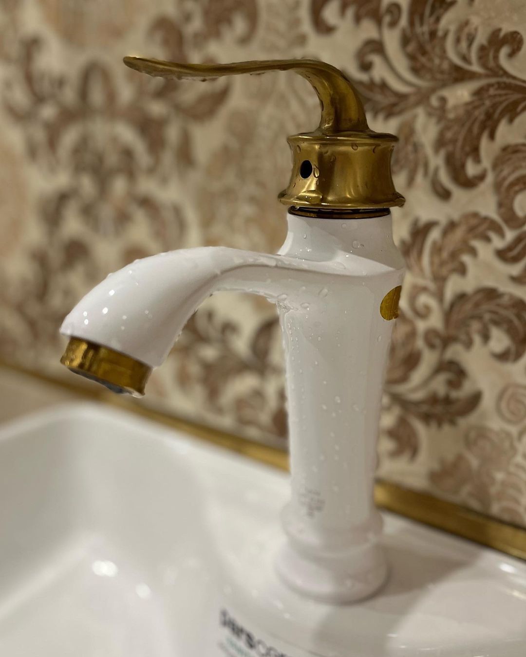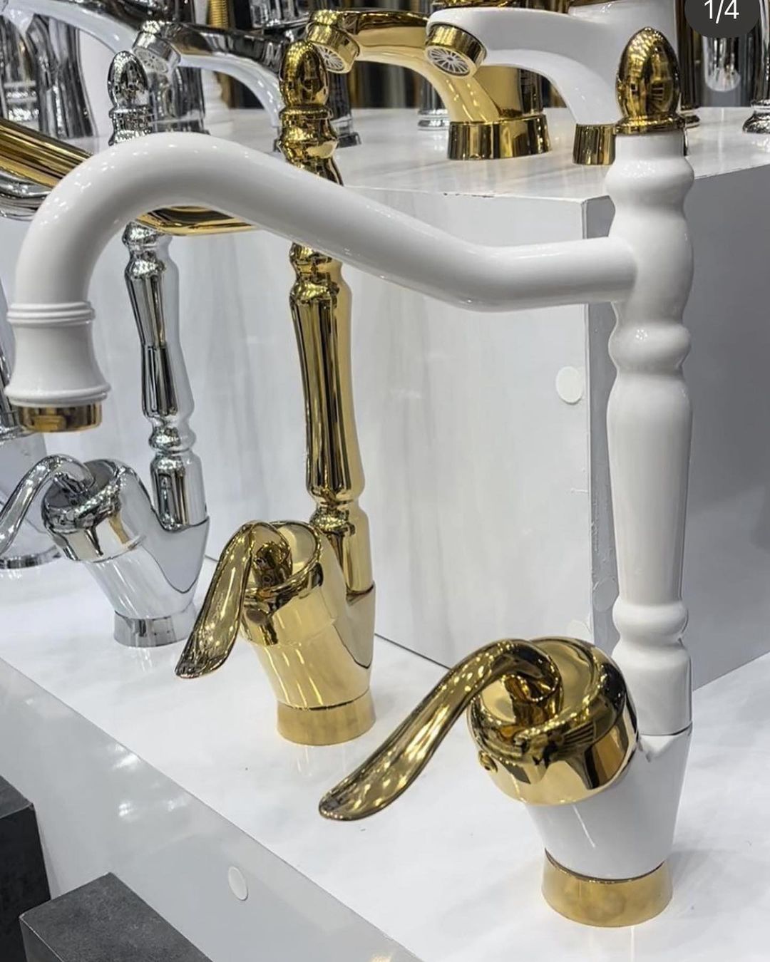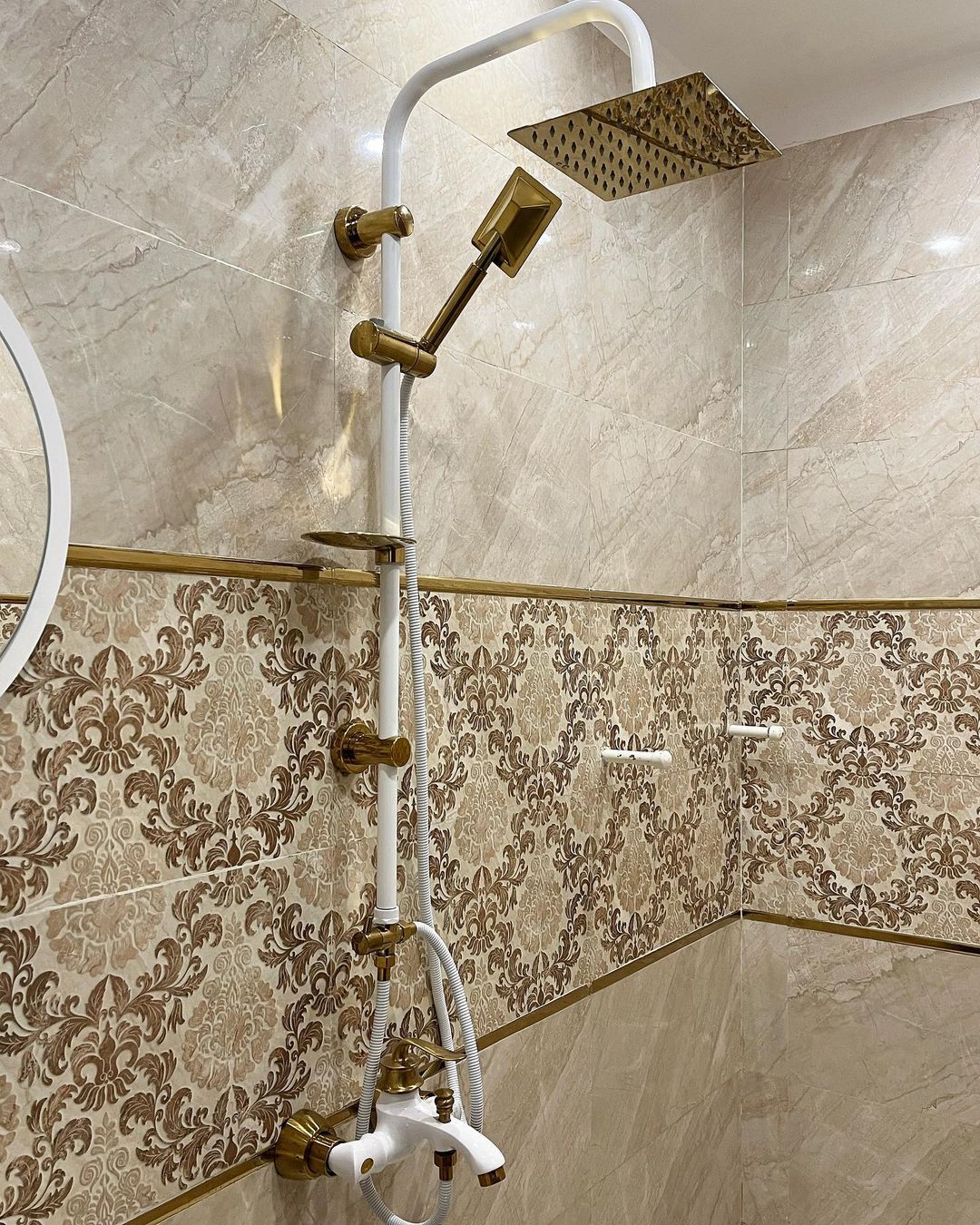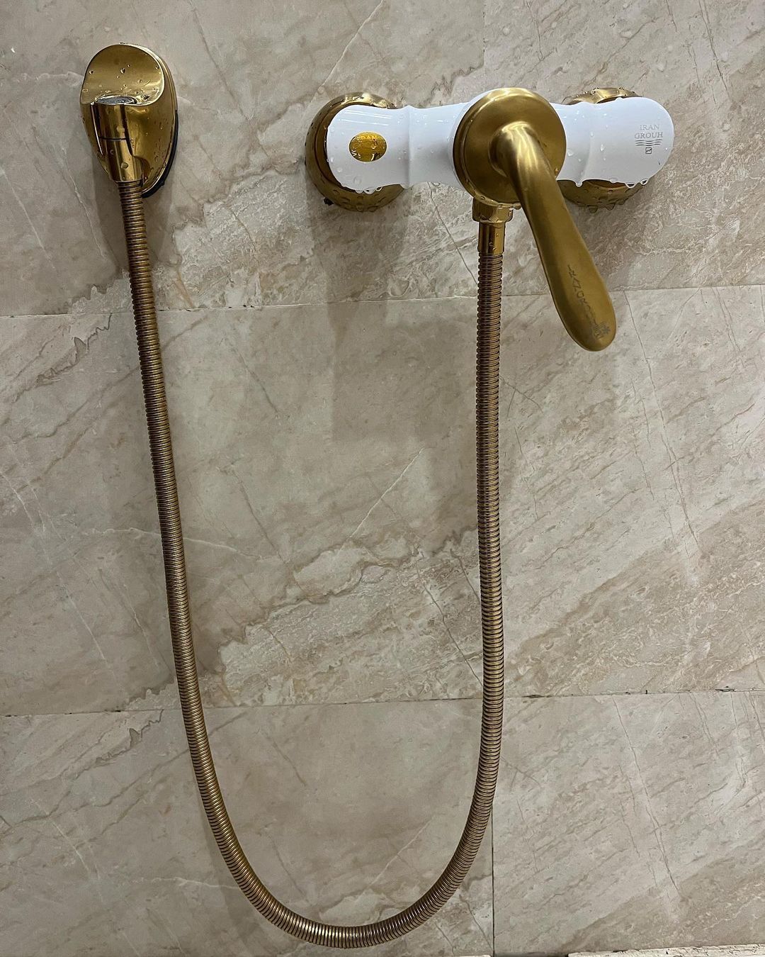 ست شیرآلات آیدا مدل بامبو رنگ سفید طلا همراه با علم دوش یونیورست