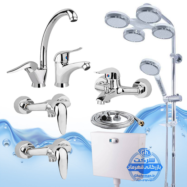 ست ۸ عددی شیرآلات برند آیدا صنعت مدل دنیز | شیر ظرفشویی + روشویی + حمام + دو عدد توالت + علم دوش یونیورست هلی شاتی + شلنگ توالت + فلاش تانک | کروم براق