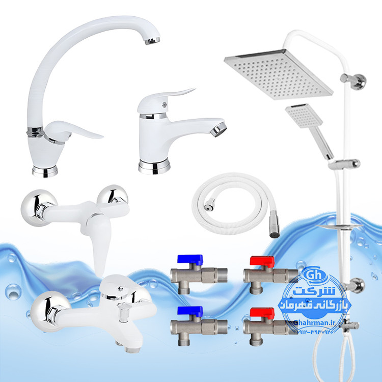 ست ۱۰ عددی شیرآلات برند آیدا صنعت مدل دنیز | شیر ظرفشویی + شیر روشویی + شیر حمام + شیر توالت + علم دوش یونیورست رسوبگیر + شلنگ توالت + چهار عدد شیر پیسوار | سفید کروم براق