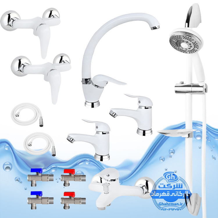 ست ۱۳ عددی شیرآلات برند آیدا صنعت مدل دنیز | شیر ظرفشویی + دو عدد شیر روشویی + شیر حمام + شیر توالت + علم دوش یونیکا سفید کروم + دو عدد شلنگ توالت + دو عدد شلنگ استیل + چهار عدد شیر پیسوار | سفید کروم براق