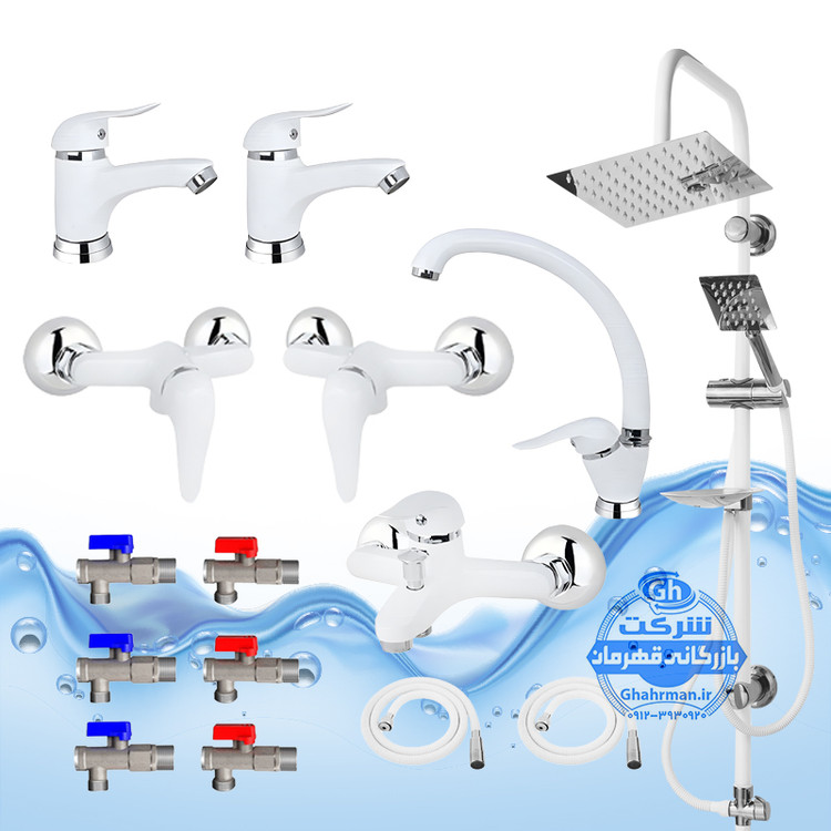 ست ۱۵ عددی شیرآلات برند آیدا صنعت مدل دنیز | شیر ظرفشویی + دو عدد شیر روشویی + شیر حمام + شیر توالت + علم دوش یونیورست مدل صفحه استیل رسوب‌گیر اتومات + دو عدد شلنگ توالت + دو عدد شلنگ استیل + چهار عدد شیر پیسوار | سفید کروم براق