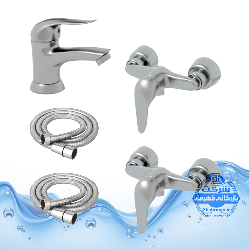 ست ۵ عددی شیرآلات برند آیدا صنعت مدل دنیز | ۲ عدد شیر توالت + شیر روشویی + ۲ عدد شلنگ توالت | کروم مات