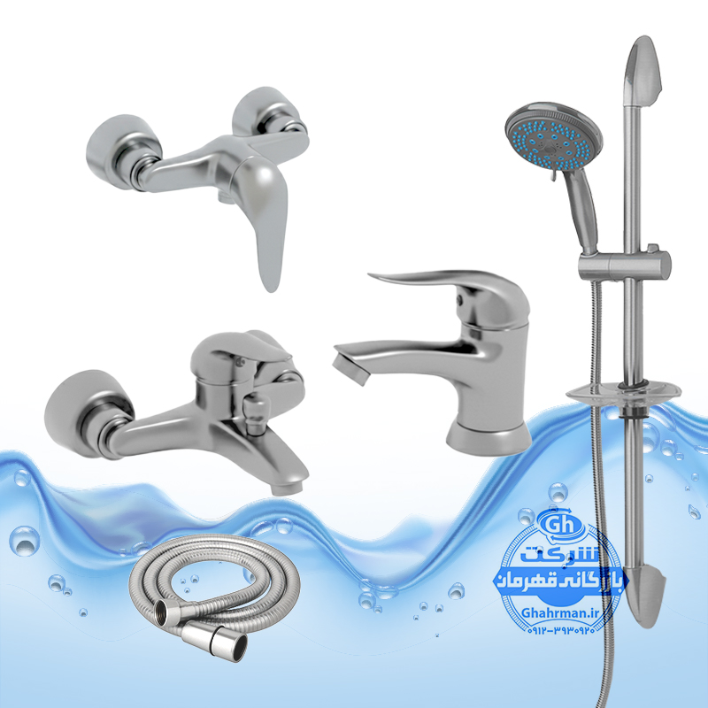 ست ۵ عددی شیرآلات برند آیدا صنعت مدل دنیز | روشویی + توالت + حمام + شلنگ + علم دوش یونیکا | کروم مات