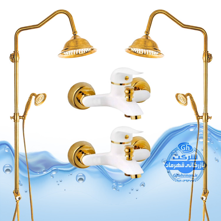 ست ۴ عددی دوش حمام با علم یونیورست شیپوری شیرآلات برند آیدا صنعت مدل دنیز | سفید طلایی