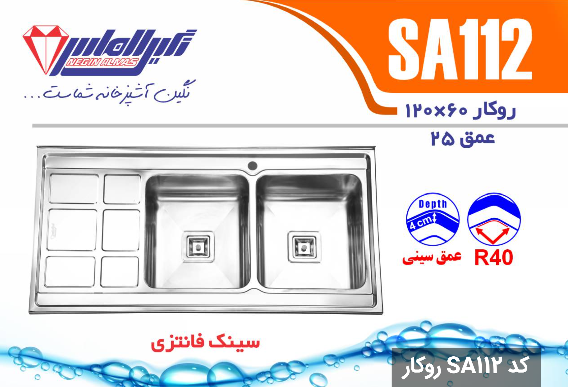 سینک فانتزی روکار SA112 سایز 60×120 عمق 25