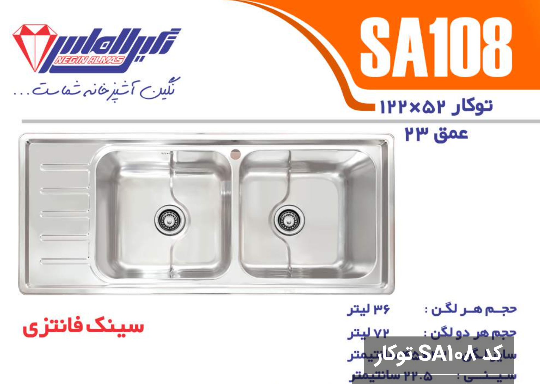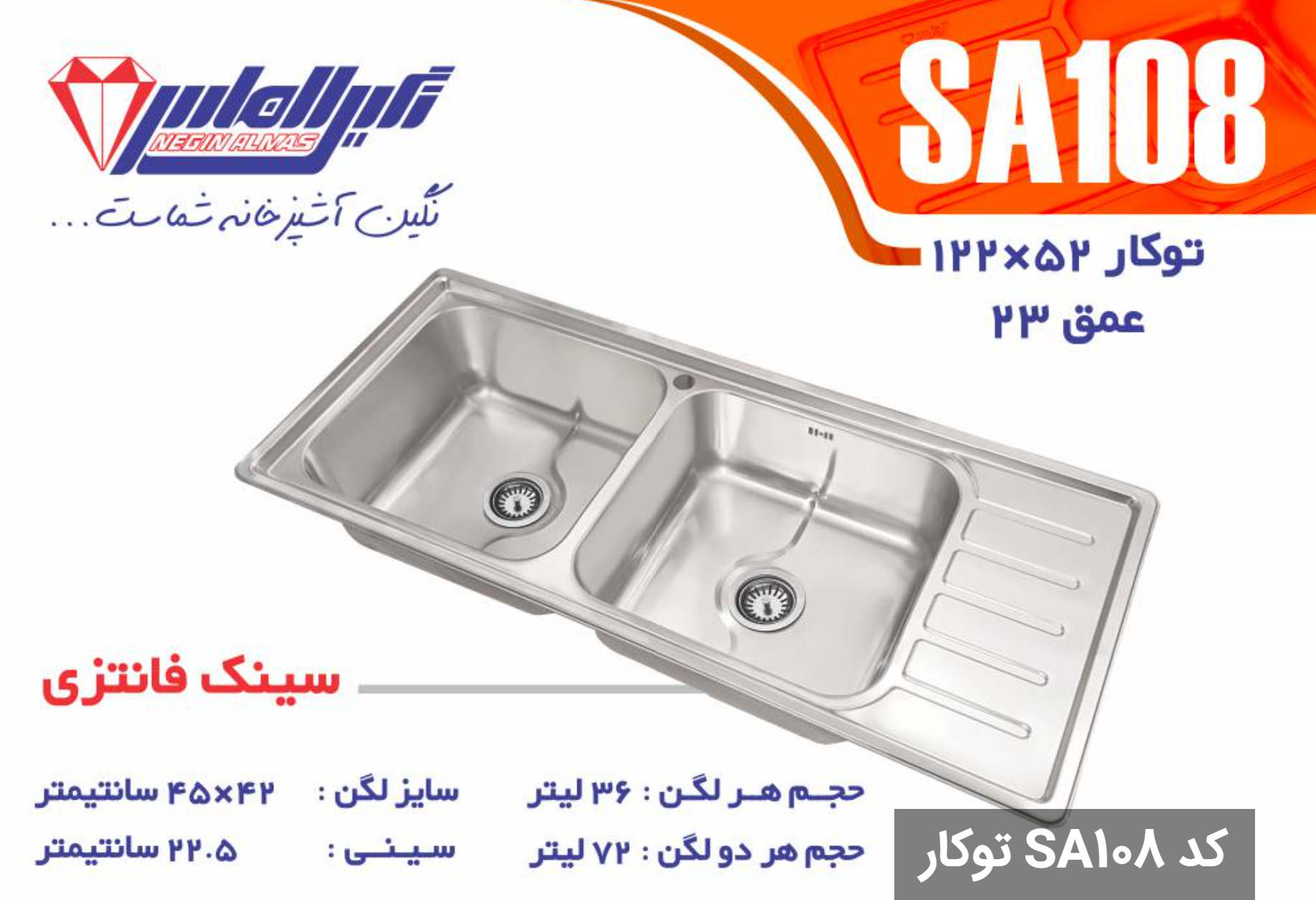 سینک فانتزی توکار SA108 سایز 52×122 عمق 23