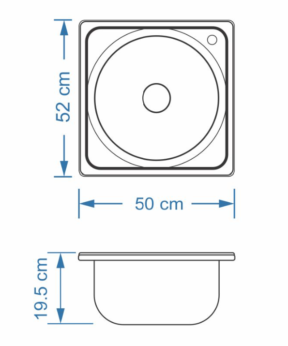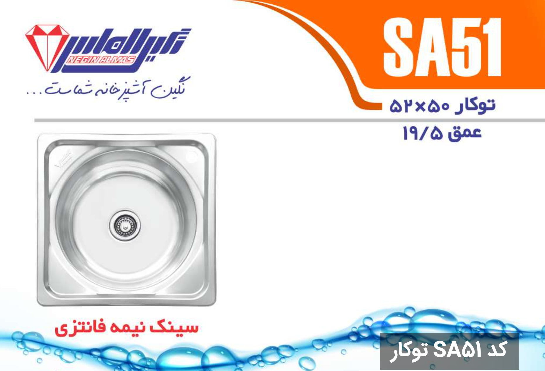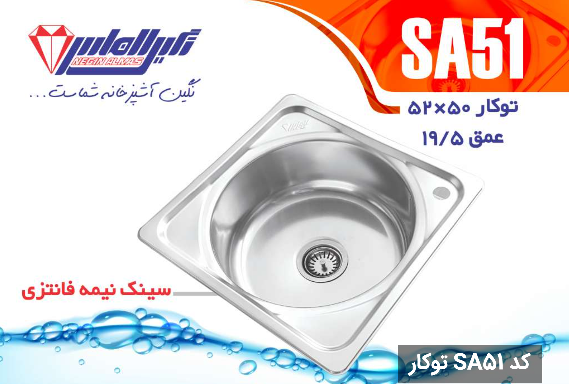 سینک نیمه فانتزی توکار SA51 سایز 52×50 عمق 19/5