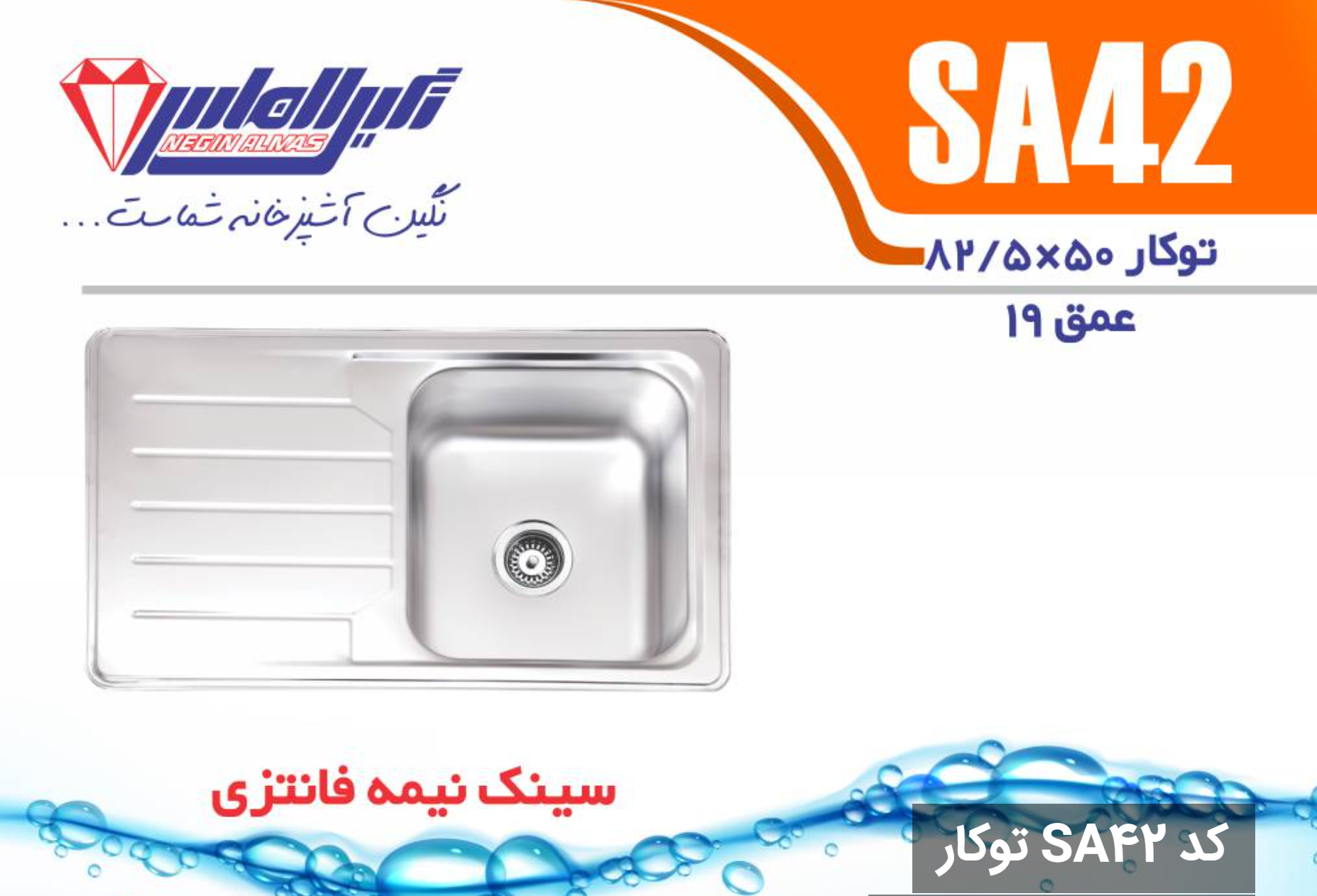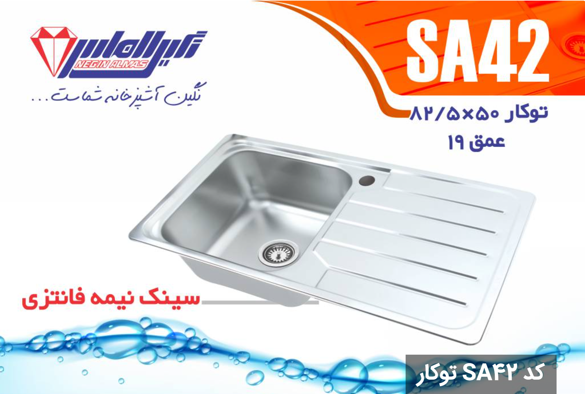 سینک نیمه فانتزی توکار SA42 سایز 50×82/5 عمق 19