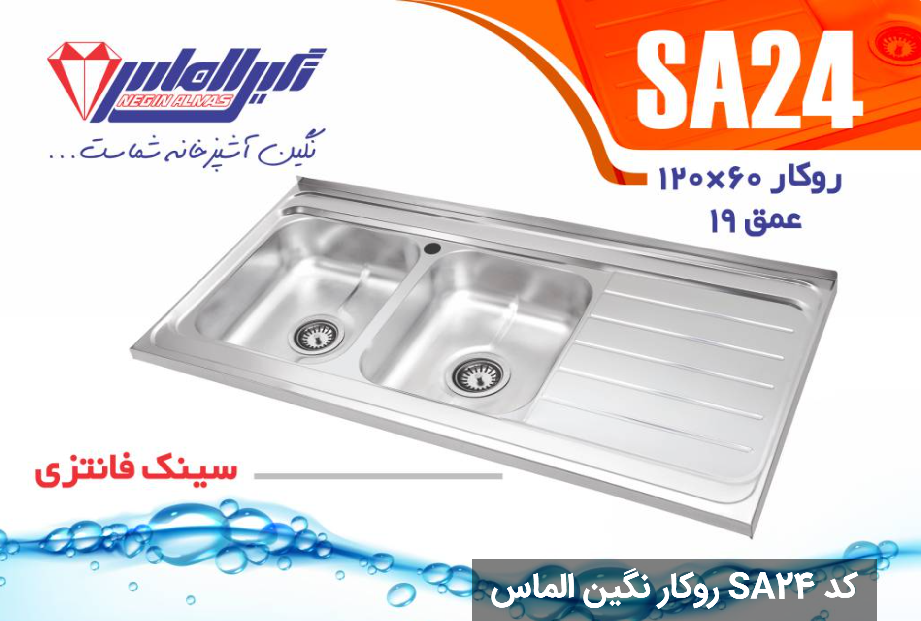 سینک فانتزی روکار کد SA24 سایز 60×120 عمق 19