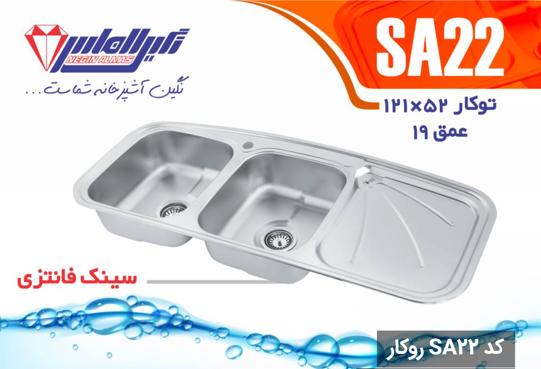 سینک فانتزی توکار کد SA22 سایز 52×121 عمق 19