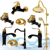 ست 9عددی شیرآلات اهرمی بامبو مشکی طلایی با علم دوش طلایی شیپوری