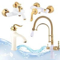 ست 4 عددی شیرآلات اهرمی بامبو سفیدطلایی همراه ظرفشویی فنردار