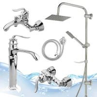 ست 5 عددی شیرآلات بامبو کروم با علم دوش استیل و روشویی پایه بلند