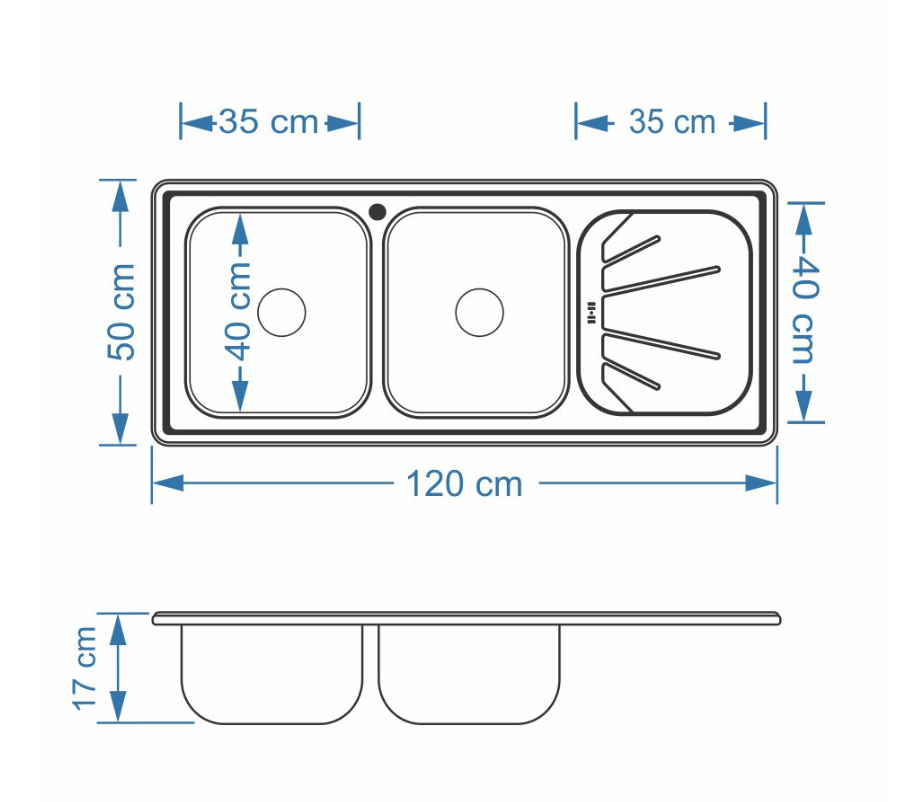 سینک نیمه فانتزی توکار کد SA06 سایز 50×120 عمــق 17